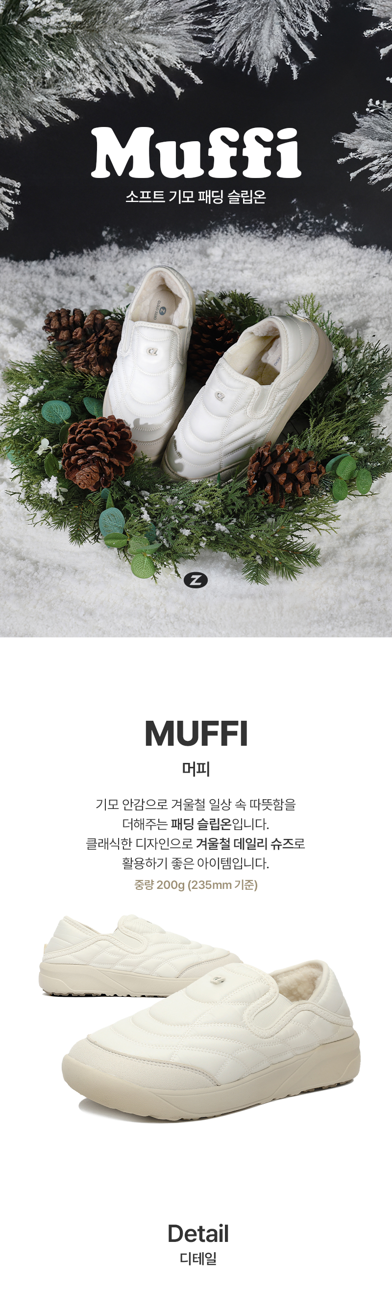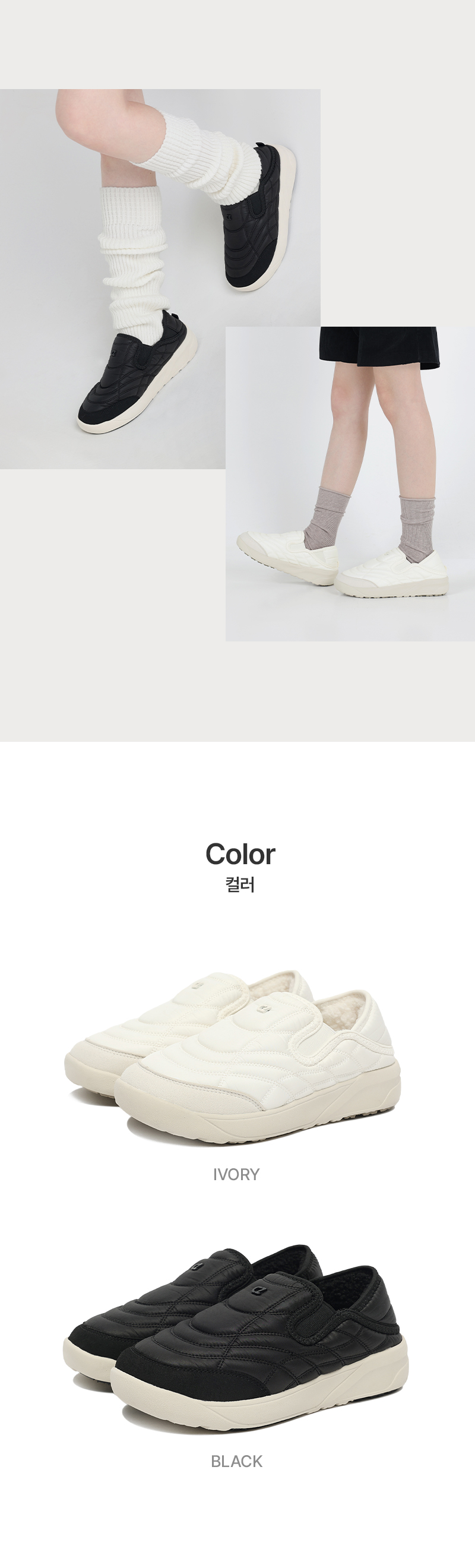 겨울철 일상 속 따뜻함을 더해주는 패딩 슬립온 스니커즈입니다.