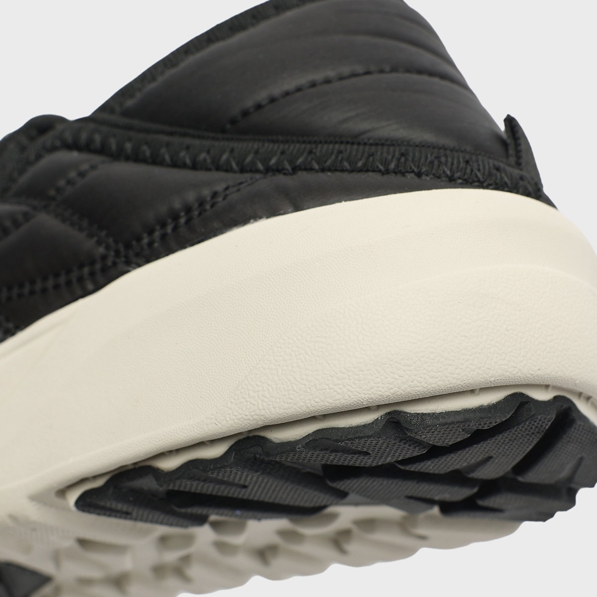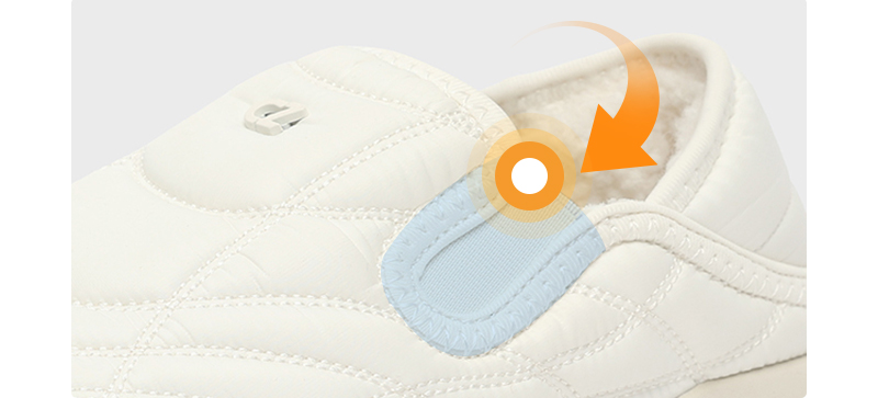 뒤꿈치 부분에 다른 질감의 기모 소재를 덧대어 방한 효과를 강화하고,