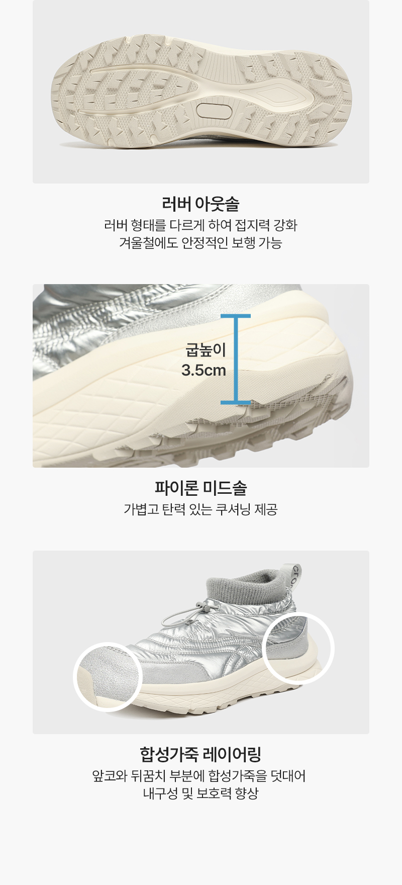 포근한 기모 안감과 기모 인솔을 적용하여 보온성 강화